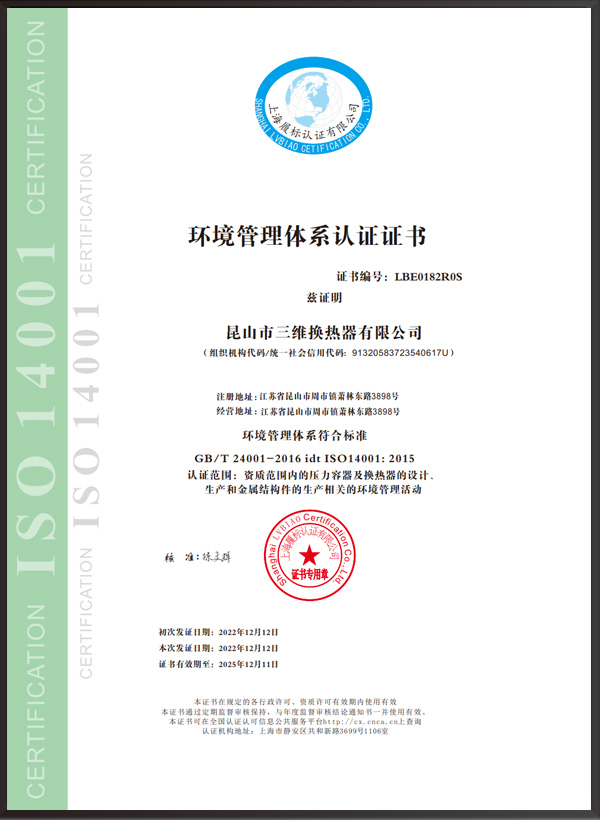 昆山市三維換熱器有限公司注冊(cè)資本5000萬元,資產(chǎn)2.1億元,公司地址位于江蘇省昆山市周市鎮(zhèn)蕭林東路3898號(hào),法人代表為顧安生,公司設(shè)有技術(shù)部、生產(chǎn)部、檢驗(yàn)部。